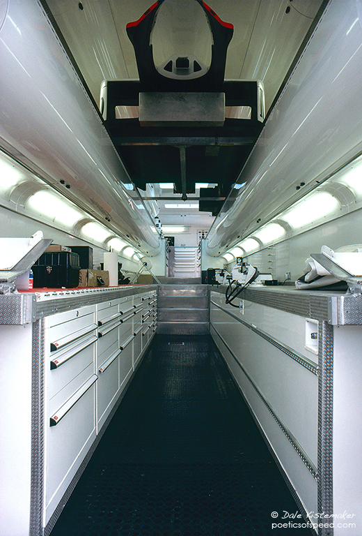 My first photography credentials for F1 were limited and only allowed me in certain areas at specified times. Eventually I received full credentials but even then there were areas off limits. I worked on gaining the trust of teams, respecting their work and staying out of the way when appropriate. Slowly I was accepted and allowed greater access. Sometimes timing was everything like when the trailer/workshop door was left open and I could see the highly organized scrupulously clean inner world of McLaren.