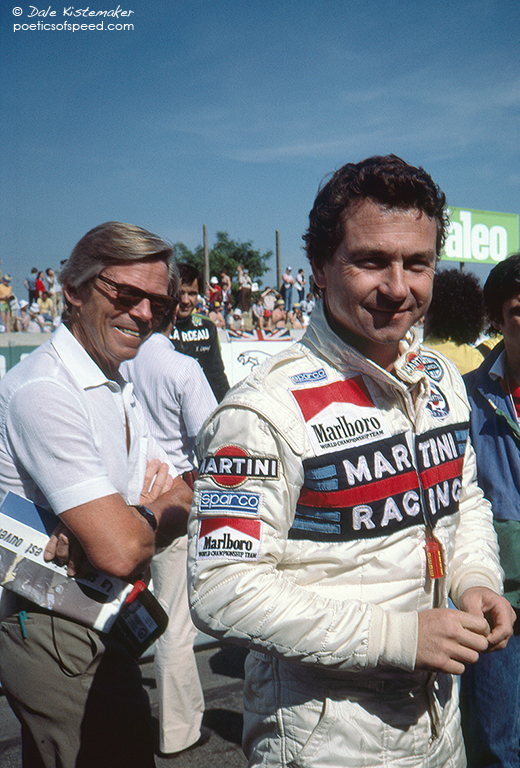 I had been talking earlier with Paul Frère, one of my revered hero driver/writers. He was a Le Mans winner in 1960 and a frequent contributor to Road & Track. I have a well worn copy of his 1966 edition of “Sports Car and Competition Driving” proudly on my bookshelf along with his “Porsche 911 Story.” In the background of this photograph Frère walks by while I was chatting with Bob Wollek. Talking with these two greats was pretty heady stuff for me and without realizing it I violated one of the cardinal rules of motorsports photography: Always Be Aware Of Your Surroundings. I was lost in the moment and I dropped to one knee to change the framing of the picture. I was unaware of a crowd surging behind me and before I knew it I was engulfed and forced further to the ground. By the time I realized what was happening I was helpless to do anything about it but Bob Wollek started pushing people back, cleared a space for me and helped me to my feet. I felt foolish and was a bit disoriented by the experience. I thanked him first in French and then in English and he just smiled that great smile of his and went off about his business.