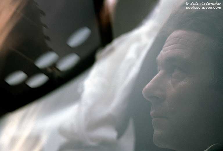 I made this photograph of him while he sat in the Lancia-Martini cockpit at Le Mans in 1985.