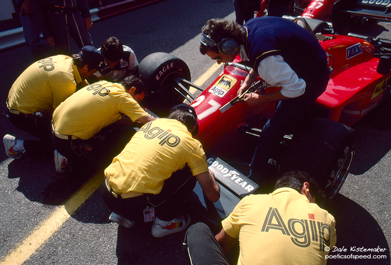 Ferrari Crew Working On Front Wing – Monaco GP 1985