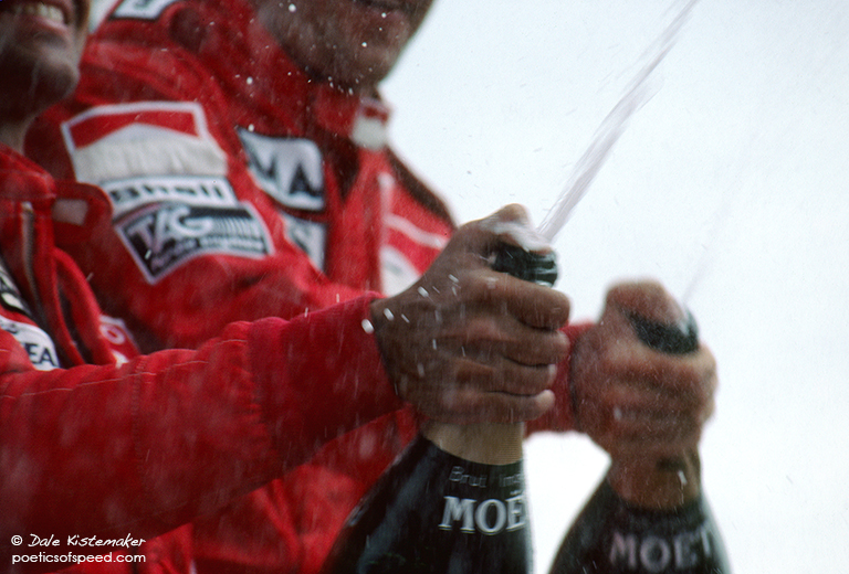 On The Podium – Champagne Spray – British Grand Prix 1985